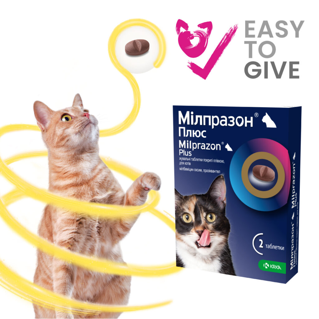 Мілпразон® Плюс для котів отримав нагороду Easy to Give від британської некомерційної організації International Cat Care, адже таблетки маленькі, овальної форми, вкриті плівковою оболонкою, без гострих країв та, що важливо, з додаванням натурального смаку печінки, що обожнюють домашні улюбленці.