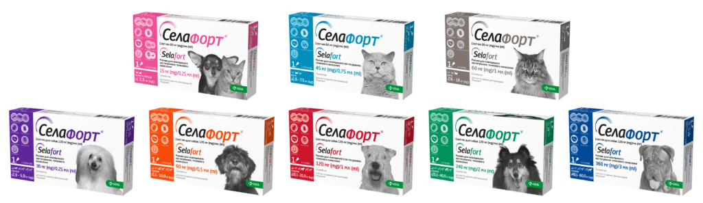 Селафорт® ефективний проти внутрішніх і зовнішніх паразитів. Одна піпетка забезпечує захист протягом 30 днів.